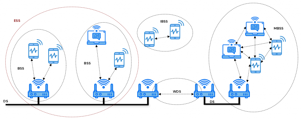 - Mesh Basic Service Set (MBSS): Mesh Netzwerk
