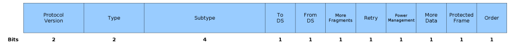 Dieses Bit wird bei Data Frames und „authentication“ Management Frames auf 1 gestellt um zu signalisieren, dass der Body vom Frame nur gelesen werden kann, wenn entschlüsselt werden kann. Dieses Feld wurde in früheren Versionen auch „WEP encrypted“ bezeichnet