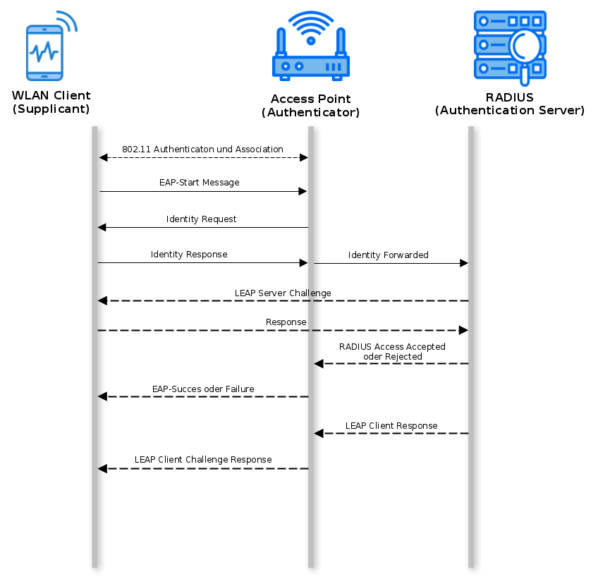 LEAP wurde von Cisco entwickelt und benötigt nur einen Usernamen und ein Passwort. Es unterstützt eine gegenseitige Authentifizierung, Datenverschlüsselung, einen Schlüssel pro Users/Session, dynamische Schlüsselrotation und einen starken MIC. Trotzdem weißt es einige Schwachstellen auf. Der Username wird im Klartext übertragen und ein MD4 Hash wird verwendet für die MSH-CHAP Authentifizierung. LEAP ist sehr anfällig gegen Dictionary-Attacken, wurde schon im Jahre 2004 geknackt und sollte deshalb vermieden werden.